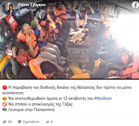 Ανάρτηση της Γρμματέα της Κ.Ε. του ΣΥΡΙΖΑ – Προοδευτική Συμμαχία, Ράνιας Σβίγκου στα μέσα κοινωνικής δικτύωσης