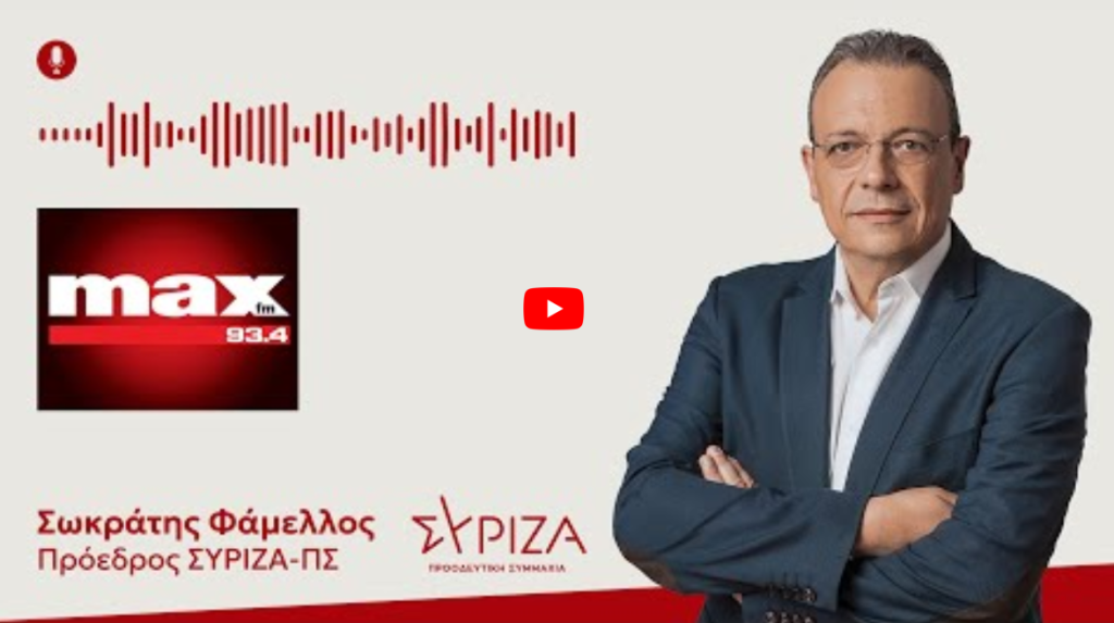 Συνέντευξη του προέδρου του ΣΥΡΙΖΑ-ΠΣ, Σωκράτη Φάμελλου, στον «Max fm 93.4» Πάτρας και στον δημοσιογράφο Αλέξανδρο Κογκόλη