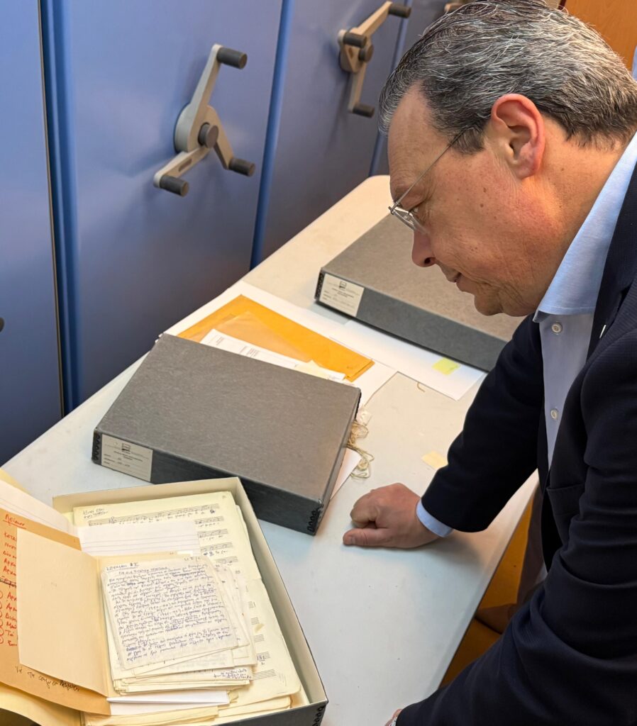 Στη συνέχεια, τον πρόεδρο Σωκράτη Φάμελλο και την αντιπροσωπεία του ΣΥΡΙΖΑ-ΠΣ υποδέχτηκε στο Μέγαρο Μουσικής Αθηνών, ο Διευθυντής του του Συλλόγου «Οι Φίλοι της Μουσικής» και μέλος του ΔΣ του Μουσείου «Μίκης Θεοδωράκης», Αλέξανδρος Χαρκιολάκης, όπου μαζί με την κα Βάλια Βράκα πραγματοποίησαν ξενάγηση στο Αρχείο του Μίκη.