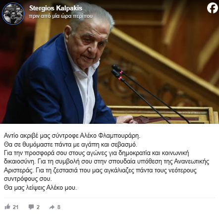 Αντίο ακριβέ μας σύντροφε Αλέκο Φλαμπουράρη.
