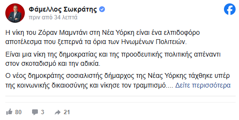 Η νίκη του Ζόραν Μαμντάνι στη Νέα Υόρκη είναι ένα ελπιδοφόρο αποτέλεσμα που ξεπερνά τα όρια των Ηνωμένων Πολιτειών.