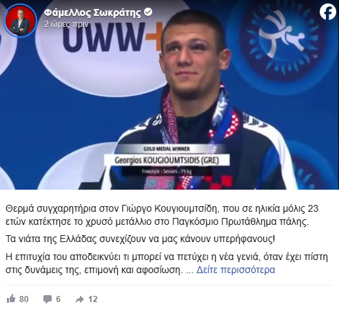 Θερμά συγχαρητήρια στον Γιώργο Κουγιουμτσίδη, που σε ηλικία μόλις 23 ετών κατέκτησε το χρυσό μετάλλιο στο Παγκόσμιο Πρωτάθλημα πάλης.