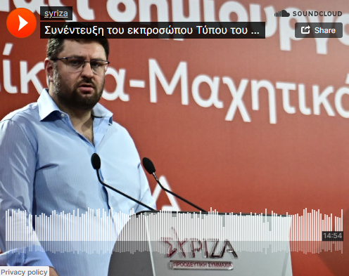 Σημεία από την συνέντευξη του εκπροσώπου Τύπου του ΣΥΡΙΖΑ-ΠΣ, Κώστα Ζαχαριάδη, στον ραδιοφωνικό σταθμό Real FM 97.8 και στους δημοσιογράφους Νίκο Χατζηνικολάου και Αντώνη Δελλατόλα