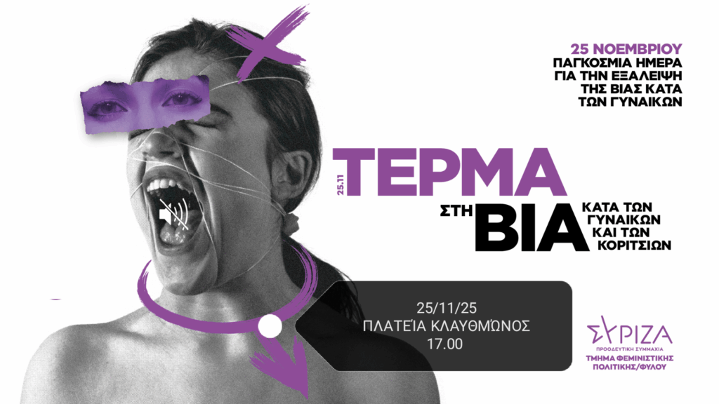 Τμήμα Φεμινιστικής Πολιτικής του ΣΥΡΙΖΑ ΠΣ – 25/11: Διεθνής ημέρα για την εξάλειψη της βίας κατά των γυναικών