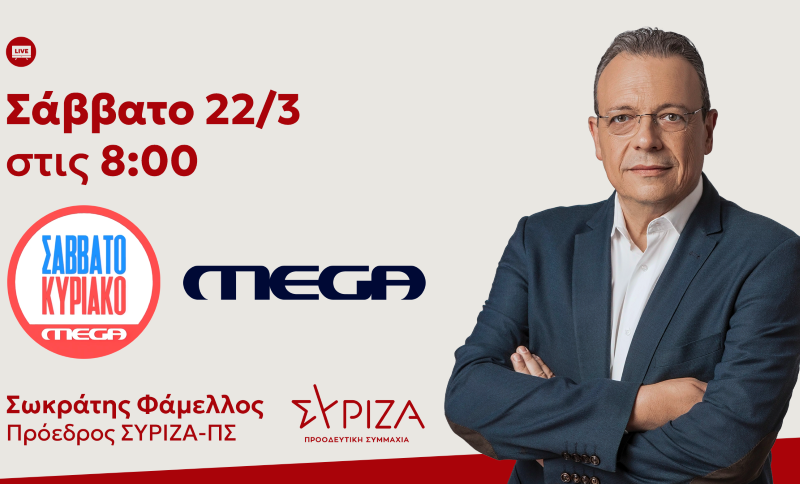 Συνέντευξη του προέδρου του ΣΥΡΙΖΑ-ΠΣ, Σωκράτη Φάμελλου, στην εκπομπή MEGA Σαββατοκύριακο και τους δημοσιογράφους Στέλλα Γκαντώνα και Ντίνο Σιωμόπουλο