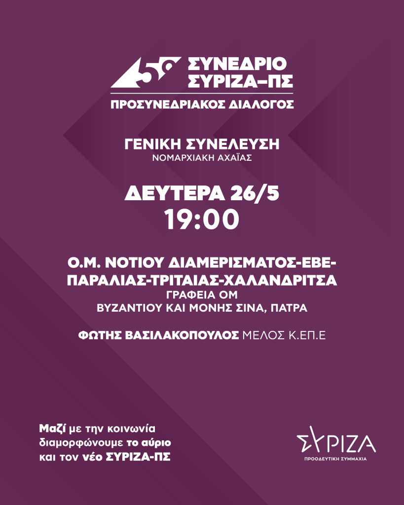 ΓΕΝΙΚΗ ΣΥΝΕΛΕΥΣΗ Ο.Μ. ΝΟΤΙΟΥ ΔΙΑΜΕΡΙΣΜΑΤΟΣ – ΕΒΕ – ΠΑΡΑΛΙΑΣ – ΤΡΙΤΑΙΑΣ – ΧΑΛΑΝΔΡΙΤΣΑΣ